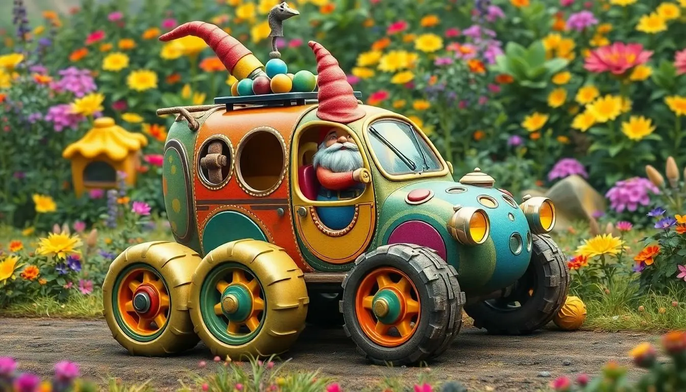 The Gnome-Mobile captivates audiences with its remarkable features that enhance its whimsical charm.